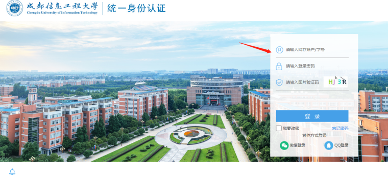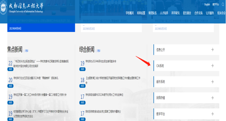 进入成都信息工程大学官方网站,找到OA系统并点击,输入本人网络储存ID和密码登录OA系统。
