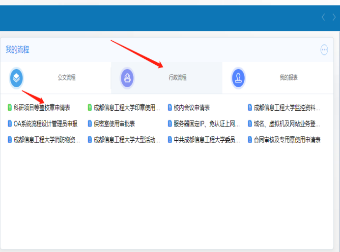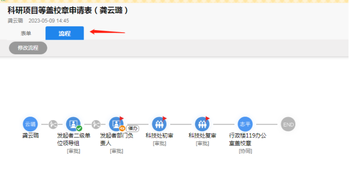 找到我的流程-行政流程-科研项目等盖校章申请表