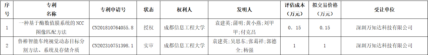 学校拟转让“一种基于酶数值膜系统的NCC图像匹配方法”等两项专利权,现将有关事项公示如下: