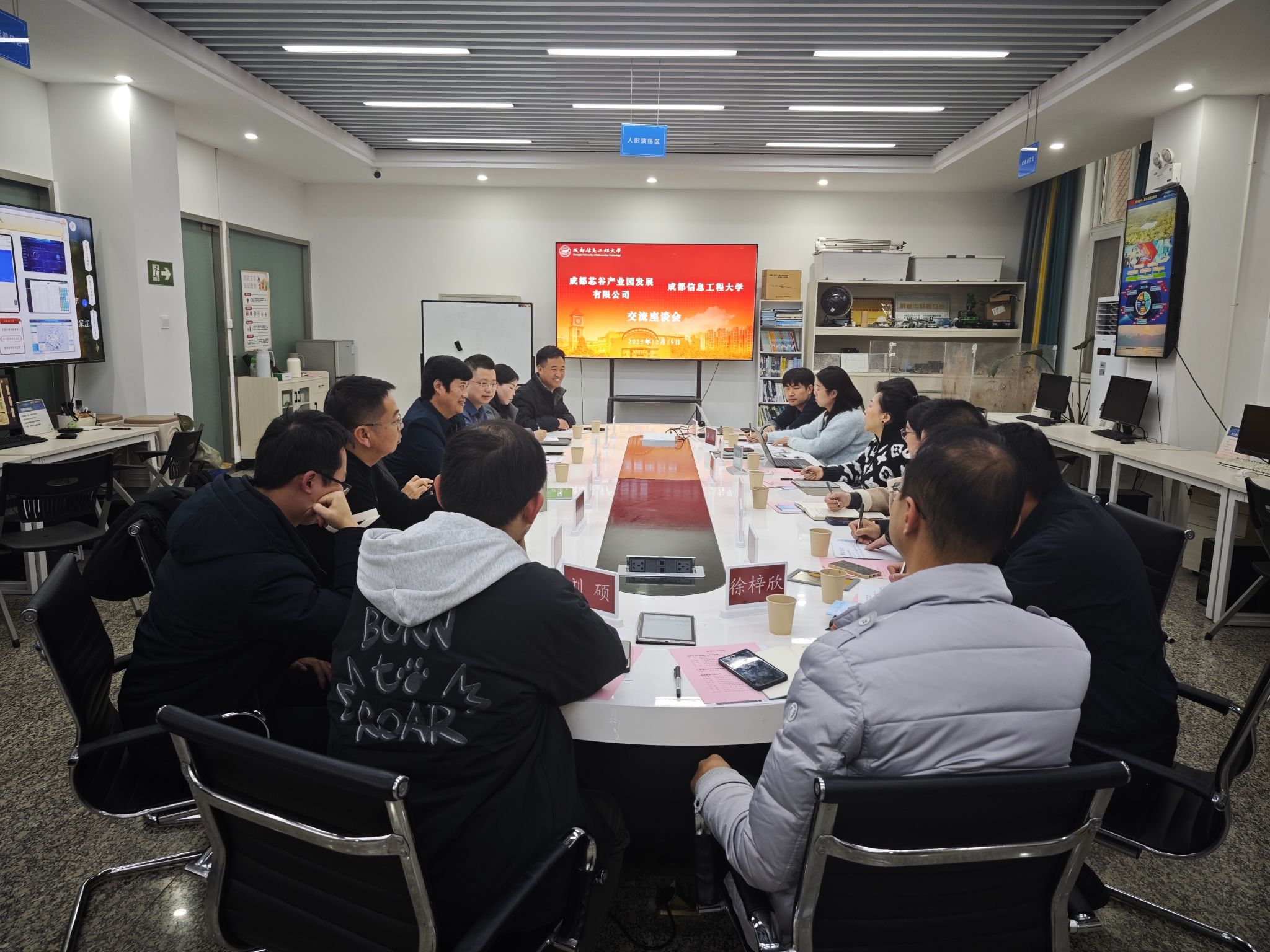 【本网讯】12月19日,成都芯谷发展服务局与成都信息工程大学交流座谈会在学校人工影响天气联合研究中心举行。双方围绕产业发展需求与高校科研资源对接展开深入研讨,共商校企合作新路径。成都芯谷产业园发展有限公司党支部书记、总经理潘琪,学校双流新型产业学院管委会主任陈智勇、科技处副处长柳锦宝等出席座谈。会议由陈智勇主持。